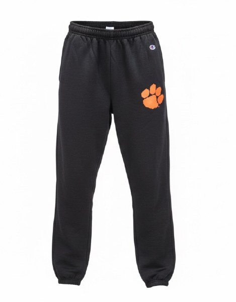 Clemson Tigers Powerblend Banded Pant with PAW logo. COLOR: BLACK. Available sizes: Adult SM-2X.