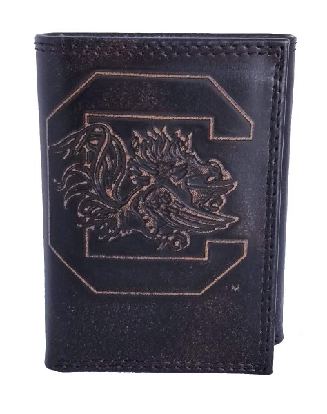 Gamecocks Burnished Series antique debossed leather Tri-Fold wallet.