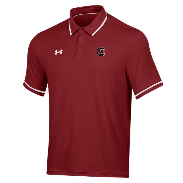 South Carolina Gamecocks Under Armour 2023 T2 Sideline Polo with Block "C" logo. Available sizes: Adult SM-3X.