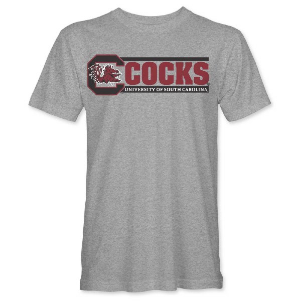 South Carolina Gamecocks “COCKS” Two Bar design on a LIGHT STEEL short sleeve T-shirt. Design is Front Print ONLY. Available sizes are ADULT SM-3X