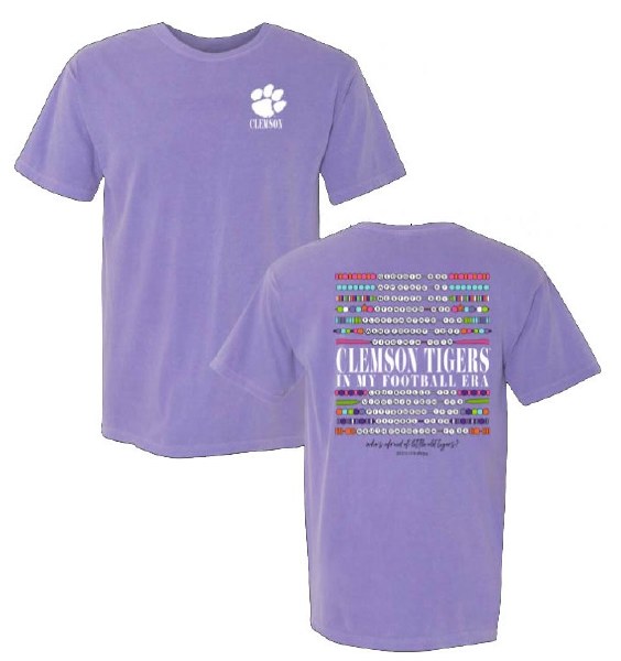 Are you in your "Clemson Era" this football season? Tell the world in this NEW Southernology® tee! This is a front and back design and is printed on a violet comfort color tee. Design has large print on back and small front left chest. Available sizes are ADULT SM-2X.