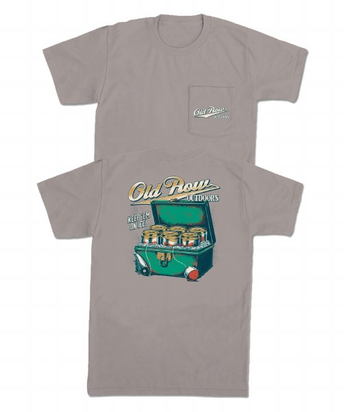 Old Row Keep Em on Ice design on an GREY short sleeve T-shirt. Design has large print on back and small front left chest. Available sizes are ADULT SM-2X.