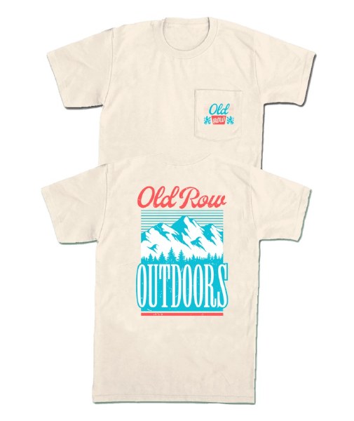 Old Row Dry Mountain design on a IVORY short sleeve T-shirt. Design has large print on back and small front left chest. Available sizes are ADULT SM-2X.