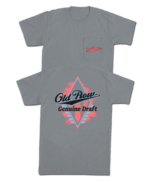 Old Row Geniune Draft design on a GRANITE short sleeve T-shirt. Design has large print on back and small front left chest. Available sizes are ADULT SM-2X.