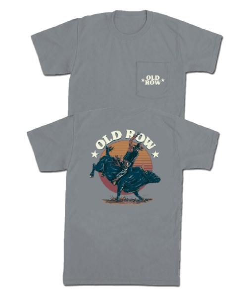 Old Row Bucking Bull design on a GRANITE short sleeve T-shirt. Design has large print on back and small front left chest. Available sizes are ADULT SM-2X.