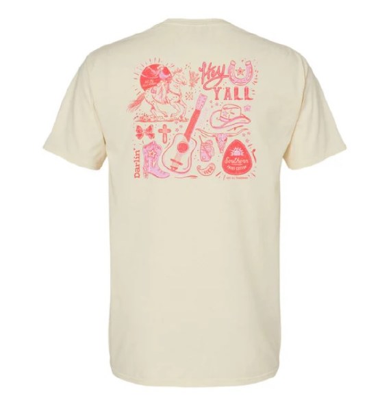 Show off your cowgirl spirit with the Long Live Cowgirls short-sleeve graphic tee. Featuring a fun, girly design with a guitar, cowgirl boots, hat, horseshoe, and more, this shirt celebrates the bold, free-spirited lifestyle. Perfect for rodeo days, country nights, or anytime you're feeling Southern and strong! Available sizes are Adult SM-2X.