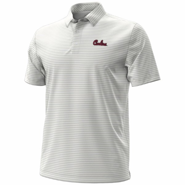 South Carolina Gamecocks Under Armour Drive Micro Groove Yd Stripe Polo with the traditional “CAROLINA” Script logo.
