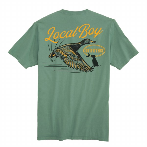 Youth LBO Moonlit Mallard design on a LIGHT GREEN short sleeve YOUTH T-shirt. Design has large print on back and small front left chest. Available sizes are YOUTH XS-YL. Crafted From 100% Cotton and a Traditional Fit, LOCAL BOY T-Shirts are made with comfort and Style in mind. Featuring a left chest pocket with a LOCAL BOY Logo and Bold design on the back, our T-Shirts are wardrobe essentials.