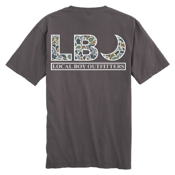 LBO Bluff design on a GRAY short sleeve T-shirt. Design has large print on back and small front left chest. Available sizes are ADULT SM-2X. Crafted From 100% Cotton and a Traditional Fit, LOCAL BOY T-Shirts are made with comfort and Style in mind. Featuring a left chest pocket with a LOCAL BOY Logo and Bold design on the back, our T-Shirts are wardrobe essentials.