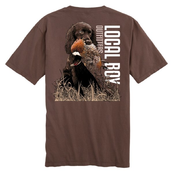 Upland Boykin design on a ESPRESSO short sleeve T-shirt. Design has large print on back and small front left chest. Available sizes are ADULT SM-3X. Crafted From 100% Cotton and a Traditional Fit, LOCAL BOY T-Shirts are made with comfort and Style in mind. Featuring a left chest pocket with a LOCAL BOY Logo and Bold design on the back, our T-Shirts are wardrobe essentials.