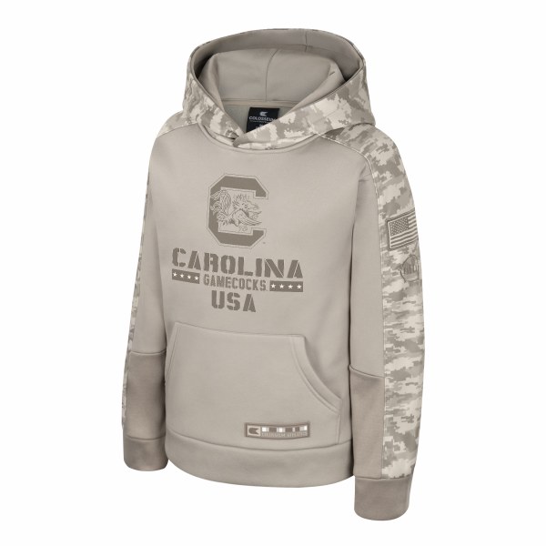 Gamecocks Youth OHT Battalion Pullover Hoodie on DUNE/MOJAVE CAMO. Available sizes are YXS-YXL.
