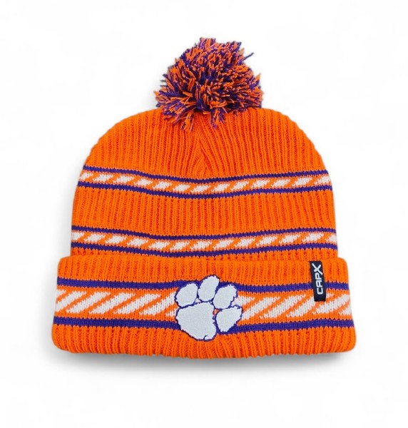 Clemson Tigers FIRESIDE PAW Beanie on Orange/Dark Purple and White.